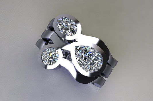 Pear & Round Diamond Pave Set Double Band Platinum Ring Design