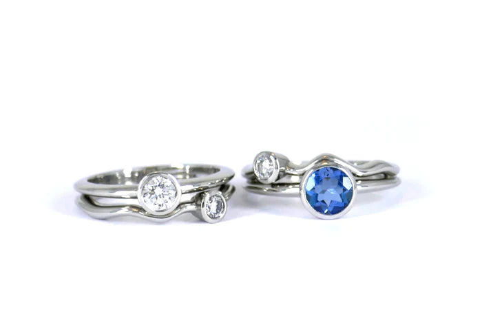 Diamond & Aquamarine Platinum Multi-Wave Rings