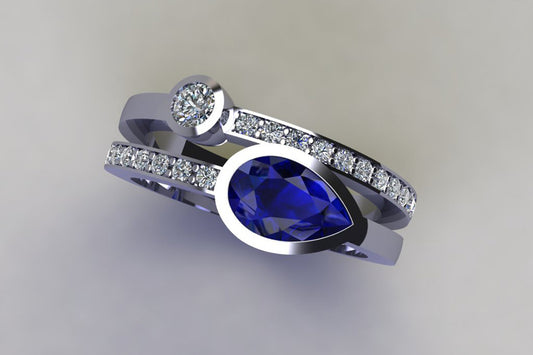 Pear Diamond & Sapphire Platinum & 18ct Gold Rings