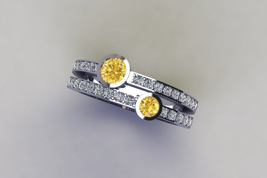 Two Stone Diamond Pave Set Double Band Platinum Ring Design