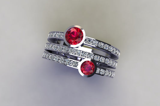 Two Stone Diamond Pave Set Triple Band Platinum Ring Design