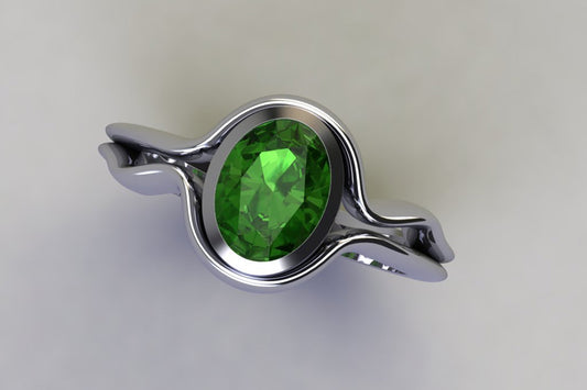 Round Green Sapphire Platinum Branch Ring Design
