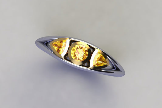Three Stone Round Brilliant Cut Yellow Diamond, Yellow Gold Ring Design