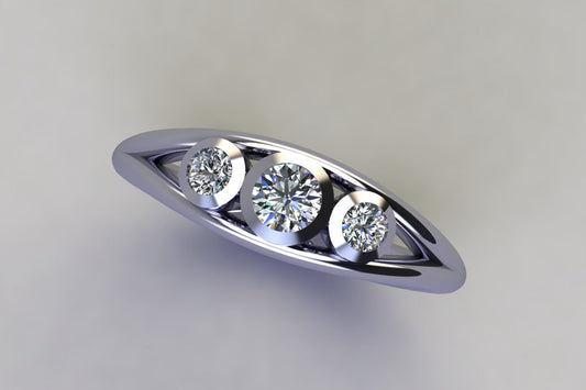 Three Stone Round Brilliant Cut & Trillion Cut Diamond Platinum Ring Design
