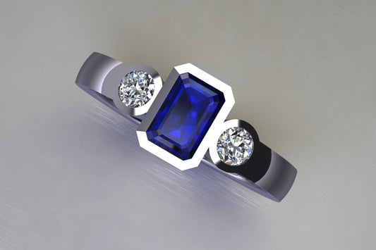 Princess Cut Sapphire & Diamond Platinum Ring Design