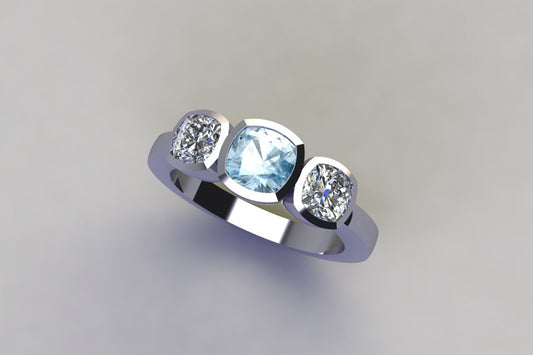 Cushion Aquamarine & Trillion Diamond Platinum Ring