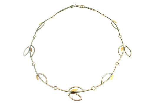 Leaf Design Three Stone Silver & 18ct Gold Necklace