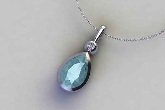 Pear Shaped Blue Topaz & Diamond White Gold Necklace Design