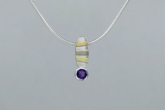 Peridot & Amethyst Short Silver & 18ct Gold Striped Necklaces