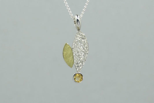 Trillion Iolite & Citrine Leaf Design Silver & 18ct Gold Necklace
