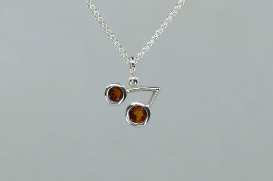 Two Bar Design Pear Citrine & Garnet Silver Necklace