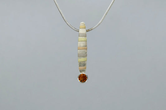 Burr Design Silver & 18ct Gold Mixed Stone Pendant