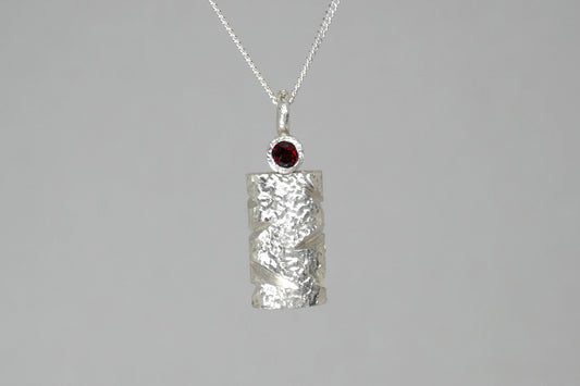 Burr Patterned Silver Necklace with Oval Cabochon Garnet