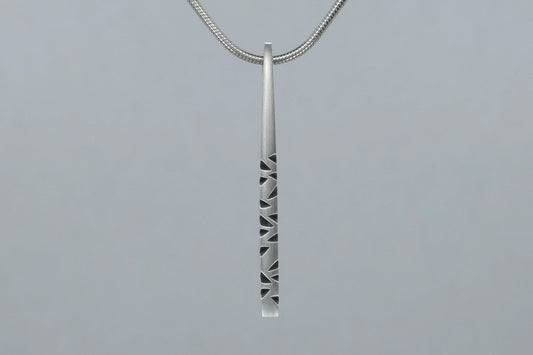 Notch Pattern Curved Bar & Bead Silver Necklace