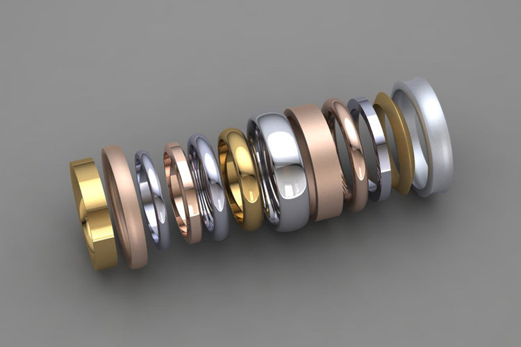 Plain wedding rings in a choice of different metals, widths, weights and finishes.