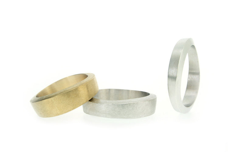 A collection of asymmetric, multi-banded and multi-sided ring designs.